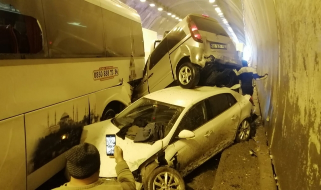 TEM Otoyolu Bolu Dağı tünel içinde İstanbul istikametinde kaza meydana geldi. Tır, otobüs, ve otomobil olmak üzere 18 araç birbirine girdi. Çok sayıda yaralı olduğu öğrenildi.