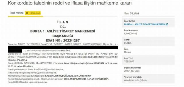MAHKEME İFLASI DUYURDU