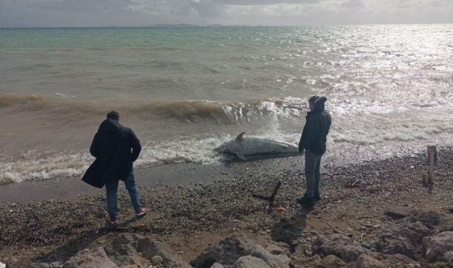 Çanakkale'nin Ayvacık ilçesinde ölü yunus sahile vurdu.