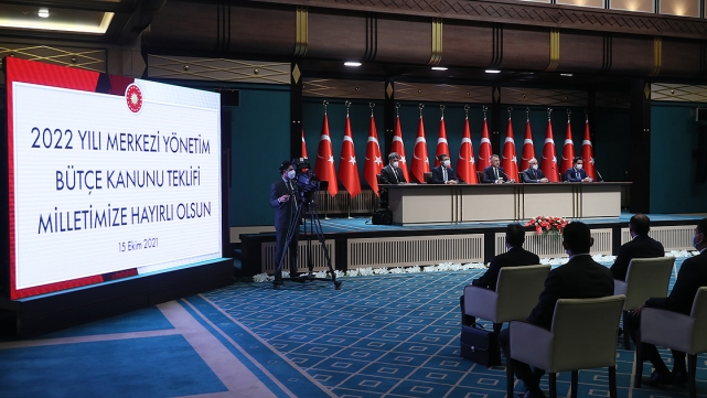 Cumhurbaşkanı Yardımcısı Fuat Oktay, Cumhurbaşkanlığı Külliyesi'nde 2022 Yılı Merkezi Yönetim Bütçe Kanunu Teklifi ile ilgili basın toplantısı düzenledi.2022 yılı bütçe hazırlıklarının, Cumhurbaşkanı Recep Tayyip Erdoğan'ın liderliğinde Strateji ve Bütçe Başkanlığı tarafından; Hazine ve Maliye Bakanlığı başta olmak üzere, tüm bakanlıklar ile kamu kurum ve kuruluşların katkılarıyla tamamlandığını belirten Oktay, hazırlık sürecinde ilgili tüm tarafların ve sivil toplum kuruluşlarının görüşlerinin alınarak değerlendirildiğini söyledi.Oktay, 2022 Yılı Merkezi Yönetim Bütçe Kanunu Teklifi'nin bugün itibarıyla Cumhurbaşkanı Erdoğan tarafından Türkiye Büyük Millet Meclisine sunulmaya hazır durumda olduğunu ifade etti.AK Parti hükümetleri döneminde elde edilen tüm kazanımlar için bütçelerin etkili birer araç olarak kullanıldığını anlatan Oktay, bütçe disiplini ilkesi çerçevesinde oluşturulan mali alanın, iktisadi kalkınmaya yönelik ulaştırma, tarım ve enerji gibi altyapı yatırımlarının yanı sıra eğitim, sağlık ve sosyal yardımlar başta olmak üzere sosyal gelişime yönlendirildiğini belirtti.Oktay, 2022 yılı bütçesinin AK Parti hükümetlerinin 20'nci, Cumhurbaşkanlığı Hükümet Sistemi'ne geçişin ardından hazırlanan 4'üncü bütçe olduğunu hatırlattı.