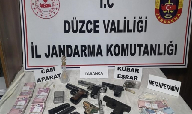 Düzce'de kaçak silah ve uyuşturucuyla yakalanan 2 şüpheli gözaltına alındı