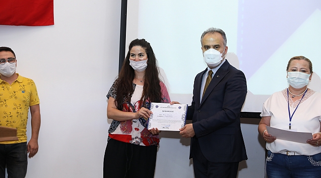 Pandemi süreci boyunca gönüllülerin desteği ve uzman ekiplerle birlikte sokak hayvanlarına yem dağıtımı yapan Bursa Büyükşehir Belediyesi, ev ve süs hayvanları satışı yapanlar ile yerel hayvan koruma görevlisi olmak isteyen hayvan severlere yönelik düzenli olarak eğitimler de veriyor. Pandemi nedeniyle 2020 yılında verilemeyen eğitimler, bu yıl Sağlık İşleri Dairesi Başkanlığı Veteriner Hizmetleri Şube Müdürlüğü tarafından 6-21 Nisan tarihleri arasında internet üzerinden verildi. Eğitime katılanlar sertifikalarını, Bursa Hayvanat Bahçesi Eğitim Salonu’nda düzenlenen törende Büyükşehir Belediye Başkanı Alinur Aktaş, Hayvanat Bahçesi Koordinatörü Erdem Saker ve Mustafakemalpaşa Belediyesi eski Başkanı Sadi Kurtulan’ın elinden aldı.