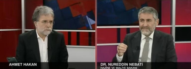 Nebati, 20 Aralık gecesi bazı kesimlere haber verildiği iddialarına da tepki gösterirerek "O akşam tedbirler açıklandı. Millet, bireyler, binlerce insan gitti hesabındaki doları internet üzerinden bozdu. Bunun dışında izah edilecek tarafı yok. Asıl bizim için en önemli kısım bu, modeldeki temel unsur bireylerdir. Sistem bireylere yönelik. Sistem bireylere yönelikse kime haber verdim ben? Mesajlaşma sistemi kurup on binlerce kişiye 'Döviz düşecek, hadi gidip alın' mı dedim? Bu nasıl bir şey, böyle bir şey olabilir mi? Kime haber vereceğim, nasıl haber vereceğim? Öyle bir şey yok. Buradaki temel dürtü bireylerin inanarak gitmesi." ifadesini kullandı.Kur korumalı mevduat hesaplarının hedefinin küçük yatırımcılar olduğunu ve uygulamanın küçük yatırımcıları korumak üzerine yapıldığını belirten Nebati, "Büyükler, yani finansal okur yazarlığı olanlar bu işin köpük olduğunu biliyor. Büyükler zaten gidişatı görüyordu, köpük olduğunu görüyordu, sert düşüş olacağını onlar gördüler. Küçük yatırımcı nereden bilecek?" değerlendirmesinde bulundu.Nebati, dövizin tekrar yükseleceği iddiasında bulunanları takip ettiklerini ve Sermaye Piyasası Kurulunun da suç duyurusunda bulunduğunu aktararak "Böyle şey olur mu? Bunlar bilerek yönlendiriyor, 'Şu kadar olacak.' diyor, 'Onu şöyle yap.' diyor. Suç olan tarafı, manipüle ediyorlar, bir tarafa sevk ediyorlar." dedi. Nebati, dolarda bugün yaşanan hareketin kendisini kaygılandırmadığını ve çok küçük hareketler yaşandığını söyledi.- "Kur optimal seviyeye gelecek"Dolar kuru beklentisinin sorulması üzerine ise Nebati sözlerini şöyle sürdürdü:"Türkiye gerçekten serbest piyasaya sahip bir ülke. Bu yapı içinde oyuncuları serbest bırakırsanız optimal noktaya kendi kendine gelir. Bir köpük olduğu belli. Köpük gidiyor, gitmeye devam edecek. Bunun belli rakamda sabitlenmesini beklemek gibi bir şey doğru değil. Uluslararası konjonktür, dünya ekonomisi, salgının devam edip etmeyeceği... Bunlar göstergeleri her zaman etkiler ama köpük olduğunu çok net görüyoruz. Rakam kendi optimal seviyesine gelecek. Bununla ilgili optimal noktayı her beraber yakalayacağız ama köpüğün devam ettiğini söyleyeyim. Küçük yatırımcı, bu getirdiğimiz finansman enstrümanları mutlaka kullansın."Kur korumalı Türk lirası mevduata katılımın sabah itibarıyla 51 milyar lira olduğunu, rakamın akşam saatlerinde 59,8 milyar liraya çıktığını belirten Nebati, bireysellerin döviz mevduatının da 169 milyar dolardan 162 milyar dolarlara düştüğünü ifade etti.Bakan Nebati, "Ekonomi gözlerdeki ışıltıdır." sözlerinin anımsatılması üzerine de "Güven, rakamlardan daha önemlidir. Ekonomi gözlerdeki ışıltıdır. Pazara çıktığınızda, çarşıda yürüdüğünüzde, esnaf gülerek 'Hoş geldin.' diyorsa, gözlerinin içinde onu anlıyorum. Gözlerinde ışıltı varsa durum iyidir." dedi.- "Yarından itibaren sahadayız"Market fiyatlarındaki yüksek artışın sorulması üzerine ise Nebati şu uyarılarda bulundu:"Yarından itibaren biz sahadayız. Yanlış yapan bizi hisseder. Hazine ve Maliyenin maliye tarafı sahaya inerse, fena iner. Net söylüyorum. İzledik, ikaz ettik uyardık, bitti. Şimdi eylem zamanı. Bugün Bakanlık içinde toplantımızı yaptık, bu işi kotaracak olan arkadaşlarla. Kamu otoritesi hissedilir. Yanlışlık yapan varsa bunların tespitinde zaten Ticaret Bakanlığı çalışıyor. Tarım ve Orman Bakanlığı, belediyeler, valilikler birtakım tespitlerde bulundu. Fahiş işi yapanlar tespit edilmiş durumda. Fahiş işlerde bulunanlar zannediyor ki Ticaret Bakanlığının kestiği cezayla kurtulacak. Bundan sonra Maliye tarafı işin içine girer. Bize ihbarlar geliyor. Vergi incelemesinden tutun da diğer her tür enstrümanın kullanılacağı alan oluşturulmuş demektir. Türkiye'de ekonomik anlamda korkulacak yerin de Maliye olması lazım. Bunlar artık sahada. 'Bizi zorlamayın.' dedim çünkü, zorlarsanız kötü olur. Dövize göre fiyatlamaları yaptılar tamam. 'Bundan böyle döviz fiyatlarında radikal iniş çıkış olmayacak, büyük dalgalar bitti', bunu sana söylüyorum, 'Normale gel'. Dövizle hiç işi olmayanlar, dövize göre fiyatını artırıyor. Onun da indirmesi lazım. Köpük kalktıysa sen de oradaki uygun köpüğü kaldır. İhbarlar geliyor, Maliyeci ihbarları değerlendirecek. Bu artık çok sert bir mücadele yöntemi."Bakan Nebati, enflasyonun aralık ayında yüksek gelmesinin beklendiğine işaret ederek "Bu yükseklik kısa sürede negatif eğilime dönecek. Bu enflasyona karşı bizim sıkı mücadelemiz başlayacak. Aralık ayının ilk 20 günündeki fiyatlamalar enflasyon hesabına girdi. Aralık ayı biraz kara tabloydu, bu kara tablonun üzerinde gelecek her şey bizi ak tabloya götürecek. Aylık bazda bu fiyatlar normal seviyelere gelecek. Onun da enflasyona pozitif etkisi olacak. Kurdaki düşüşün de etkisi olacak. 2022 yılı istikrarlı bir yıl olacak. Enflasyonda ocaktan itibaren yavaş yavaş indirimleri hissedeceğiz, aylık bazda indirimleri göreceğiz. 2023'e girerken enflasyon diye bir olgumuz kalmayacak, çünkü olumlu bir kısır döngüye girdik. Önümüzdeki yıl düzeltme, toparlanma olacak. 2023 ocak ayında bu işlerin çok iyi noktaya geldiğini hep beraber görmüş olacağız." diye konuştu.