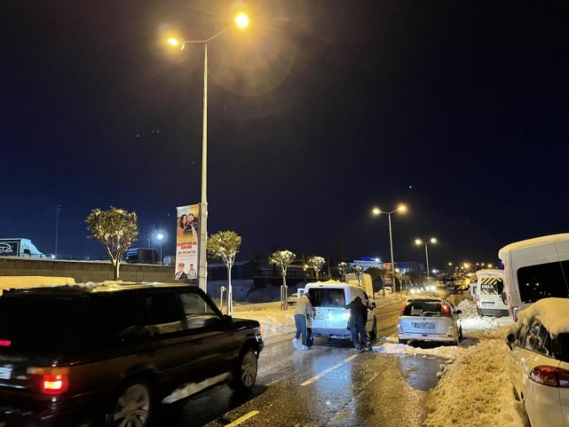 Kentteki yoğun kar yağışı nedeniyle dünden bu yana araçlarıyla mahsur kalan çok sayıda kişinin bekleyişi devam ediyor