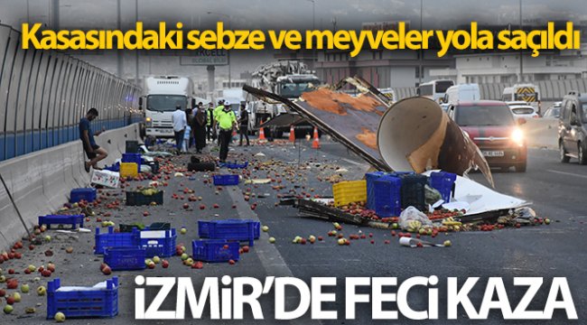 İzmir'de kamyonet kaza yaptı; kasasındaki sebze ve meyveler yola saçıldı