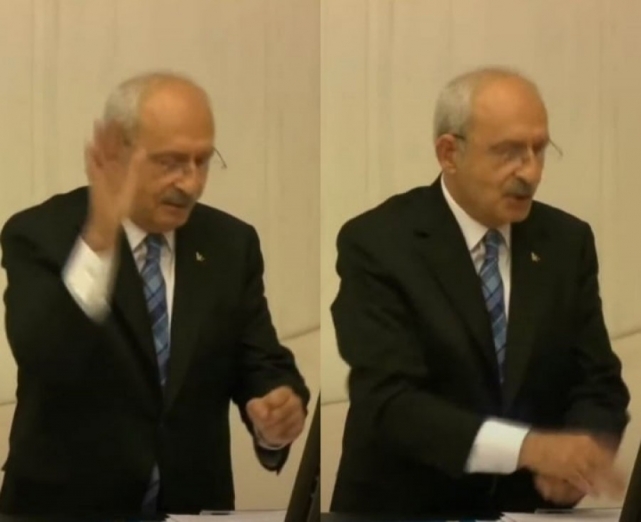 GÖRÜNTÜLERİN İNCELENMESİ İÇİN OTURUMA ARA VERİLDİAK Parti Grup Başkanvekili Mahir Ünal, "Genel ahlak kurallarına aykırı bir şekilde davrandı. İç tüzük 160'a göre kaba ve yaralayıcı sözler yapmaktan kınanması gerekiyor." diyerek Kılıçdaroğlu'nun ceza almasını istedi. TBMM Başkanı Mustafa Şentop, görüntülerin incelenmesi için oturuma ara verdi.VARANK: BİR TEK KÜFÜRLÜ EL HAREKETİ YAPMADIĞI KALMIŞTISanayi ve Teknoloji Bakanı Mustafa Varank da sosyal medya hesabından tepki göstererek, "Gazi Meclis'te, 85 milyonun huzurunda bir tek küfürlü el hareketi yapmadığın kalmıştı. Ayıptır!" dedi.