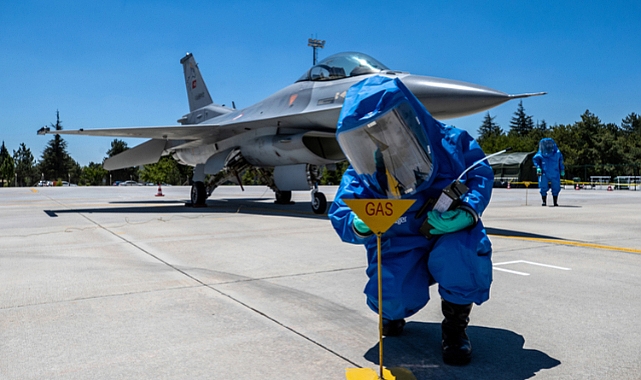 Birlik, Konya 3. Ana Jet Üs Komutanlığındaki kimyasal harp maddesine maruz kalan F-16 savaş uçağının kirlilikten arındırılması tatbikatını da başarıyla gerçekleştirdi.Senaryo gereği, katıldığı hava harekatında KBRN tehdidine maruz kalan F-16 jeti, iniş yaptığı pistte Hava Kuvvetleri KBRN Uzman Savunma Bölüğü tarafından karşılandı.Ferdi koruyucu teçhizat ile donatılan bölüğün keşif ve numune alma timinin, Kimyasal Harp Maddesi Tespit Cihazı ile jetin üzerinde tehdit uyarısı almasının ardından hava aracı temizleme personeli harekete geçti.Uçağın çevre güvenliğini almakla işe başlayan ekip, kokpiti açmaması için pilota uyarılarda bulundu, süreçle ilgili bilgilendirme yaptı.MT16 Dekontaminasyon Sistemi aracılığıyla püskürtülen solüsyonla jetin temizlenmesinin ardından pilot, özel maske ve koruyucu elbiseyle uçaktan tahliye edildi."Toplu korunma sistemi" adı verilen, personelinin KBRN ortamında bile temiz bir alanda dinlenmesini sağlamak üzere kurulan birimde kirlilik kontrol sahası proseslerinden geçirilen pilot, yeniden harekata katılım sağladı.