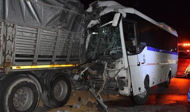 Manisa'da işçi servisi tıra çarptı: 20 yaralı