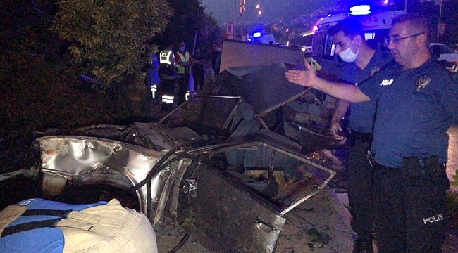Bursa'da sabah saatlerinde kontrolden çıkan otomobil kaldırıma çarparak ikiye bölündü. Aracın ikiye bölünmesi üzerine yol kenarında bulunan bahçeye uçan 5 kişi sağlık ve itfaiye ekipleri tarafından çıkarıldı.