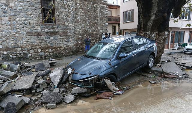 Bursa Büyükşehir Belediye Başkanı Alinur Aktaş, şiddetli yağış sonrası oluşan selden etkilenen Bursa'nın Mudanya ilçesi Tirilye Mahallesi’nde yürütülen çalışmaları yerinde inceledi.Bursa Büyükşehir Belediyesinden yapılan açıklamaya göre Aktaş, Ankara'daki Genişletilmiş İl Başkanları Toplantısı'nın ardından sel felaketinin etkili olduğu Mudanya'nın Tirilye Mahallesi'nde incelemelerde bulundu.Önceki gece başlayan sağanak yağışların ardından bölgede başlatılan ve halen devam eden çalışmaları yerinde inceleyen Aktaş, Ankara'da olduğu için gelişmeleri sürekli telefondan takip ettiğini, can kaybı olmamasının en büyük teselli olduğunu belirtti.Tirilye'de şiddetli yağış sonrası oluşan sel ve taşkın sebebiyle bazı ev, iş yeri ve araçların hasar gördüğünü kaydeden Aktaş, "Ekiplerimiz ilk andan itibaren bu hasarları tamir etmeye çalışıyor. İtfaiye, Zabıta, Ulaşım, Park ve Bahçeler Dairesi, BUSKİ ve Tarım Peyzaj AŞ'den 344 personel ve 106 araç ile müdahale ettiğimiz bu olayda herhangi bir can kaybı olmaması en büyük tesellimiz. Hasarlar var, inşallah onları da giderebilmek adına büyük bir gayret içerisinde olacağız" ifadelerini kullandı.AFAD'ın yaptığı tespitlere göre, Tirilye'de taşkın sonucu 63 iş yeri, 21 ev ve 33 araçta hasar oluştuğunu dile getiren Aktaş, şunları kaydetti:"Bursa genelinde gece boyunca devam eden aşırı yağışlar sonucu Gemlik'in Karacaali, Kumsaz, Kumla, Şükriye mahallelerinde, Osmangazi-Yıldırım-Nilüfer ana arter ve mahallelerinde, Orhangazi'nin Ortaköy, Yeniköy, Gemiç, Karsak, Mahmudiye, Mustafakemalpaşa'nın Yenikızılelma, Büyükorhan'ın Karaçukur ve Danaçalı, Karacabey'in Ballıkaya Mahallesi’nde yağıştan etkilenen ev, iş yeri ve araçlar oldu. Bu olaylara ilgili bütün birimlerimizden toplam 505 personel ve 174 araç ile gerekli müdahaleler yapıldı ve yapılmaya devam ediliyor. Bu çerçevede Bursa genelinde 149 olaya müdahale ettiğimizi belirtmek isterim. Hem Tirilye'de yaşayan vatandaşlarımıza hem de diğer ilçelerimizde yağıştan etkilenen hemşehrilerimize geçmiş olsun. Rabbim bizleri her türlü afetten korusun. Gerekenleri inşallah AFAD'la birlikte yapacağız. Yaraları el birliğiyle saracağız."